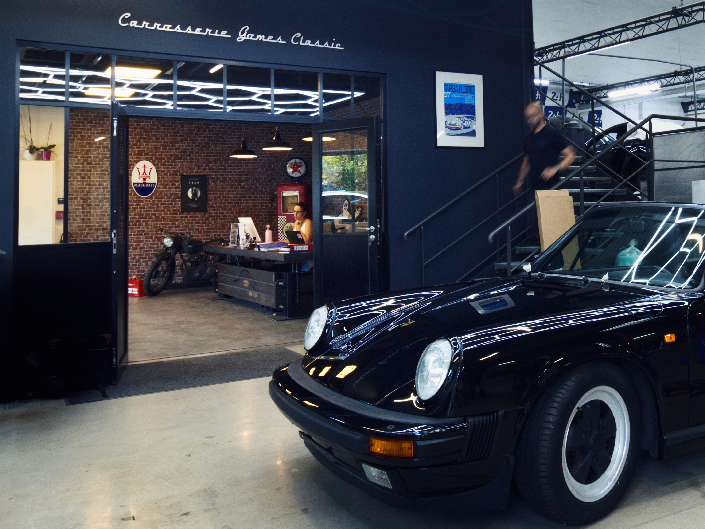 Oui, chez Gomes Classic, il y a aussi Paco un petit chien adorable qui fait partie de la famille. Il adore les visiteurs, surtout ceux qui viennent pour une belle carrosserie !